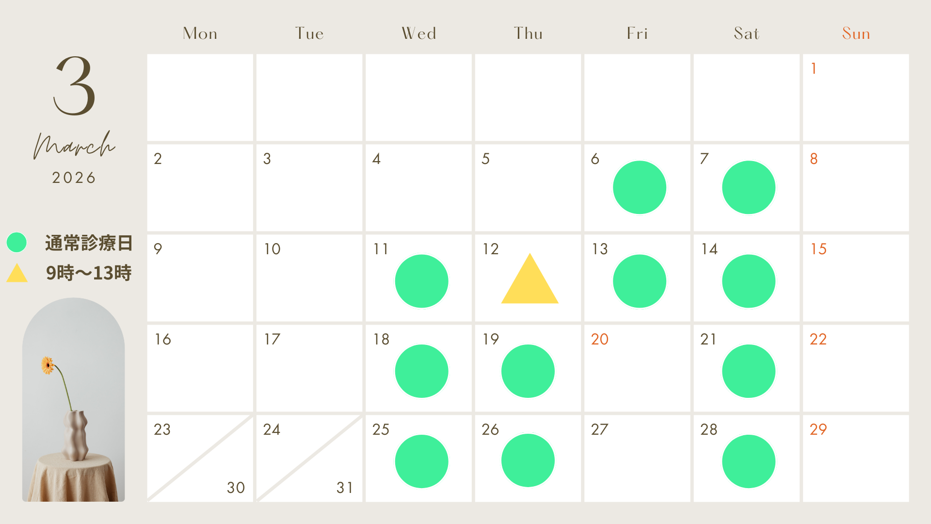 2026年3月の診療日・休診日のご案内